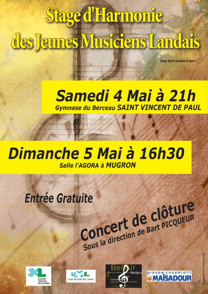 Depuis 2004, l’Union Musicale des Landes organise chaque année son Stage au Berceau au sein de l’ensemble scolaire Saint Vincent de Paul. Ce cadre privilégié offre aux jeunes musiciens un environnement sécurisé, convivial et propice à la pratique collective, avec internat et salles dédiées pour travailler par pupitres.
